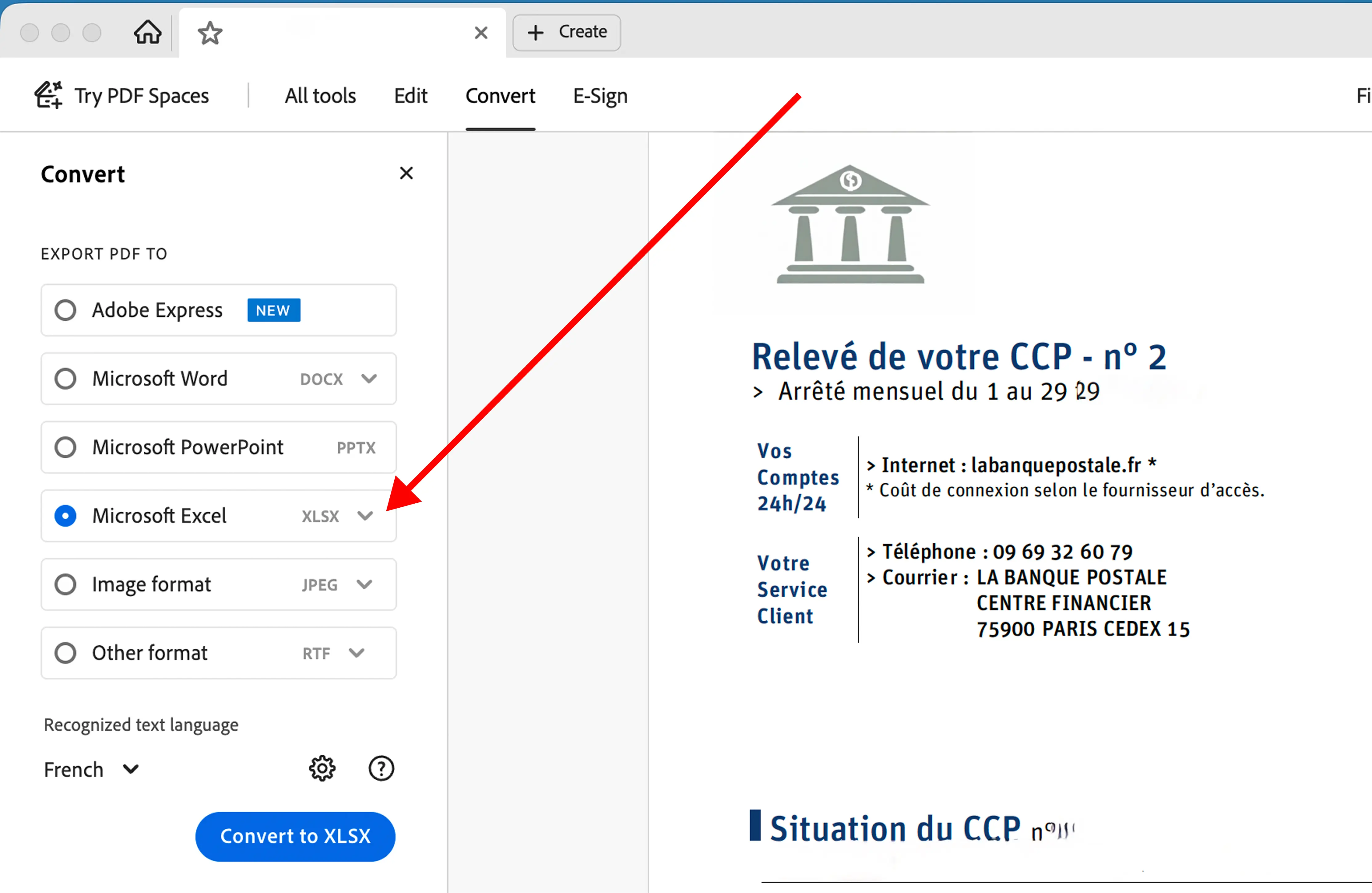 The main issues: Several transaction lines often merge together, requiring manual cleanup afterward. Adobe also extracts ALL information from the page, creating unnecessary rows with headers, footers, and promotional content that you'll need to delete manually. The result is usable but needs significant post-processing.