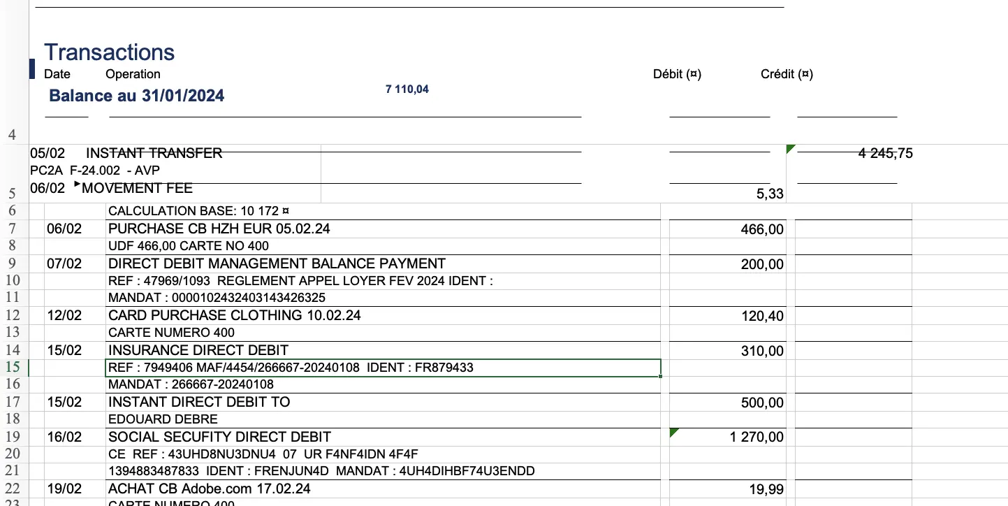 You want to turn your US bank statements into exploitable data in Excel? I recommend using a tool that combines OCR and LLM technology. Because of the complex layout of bank statements, this approach delivers the best results in terms of accuracy and speed compared to traditional OCR methods or LLMs alone.