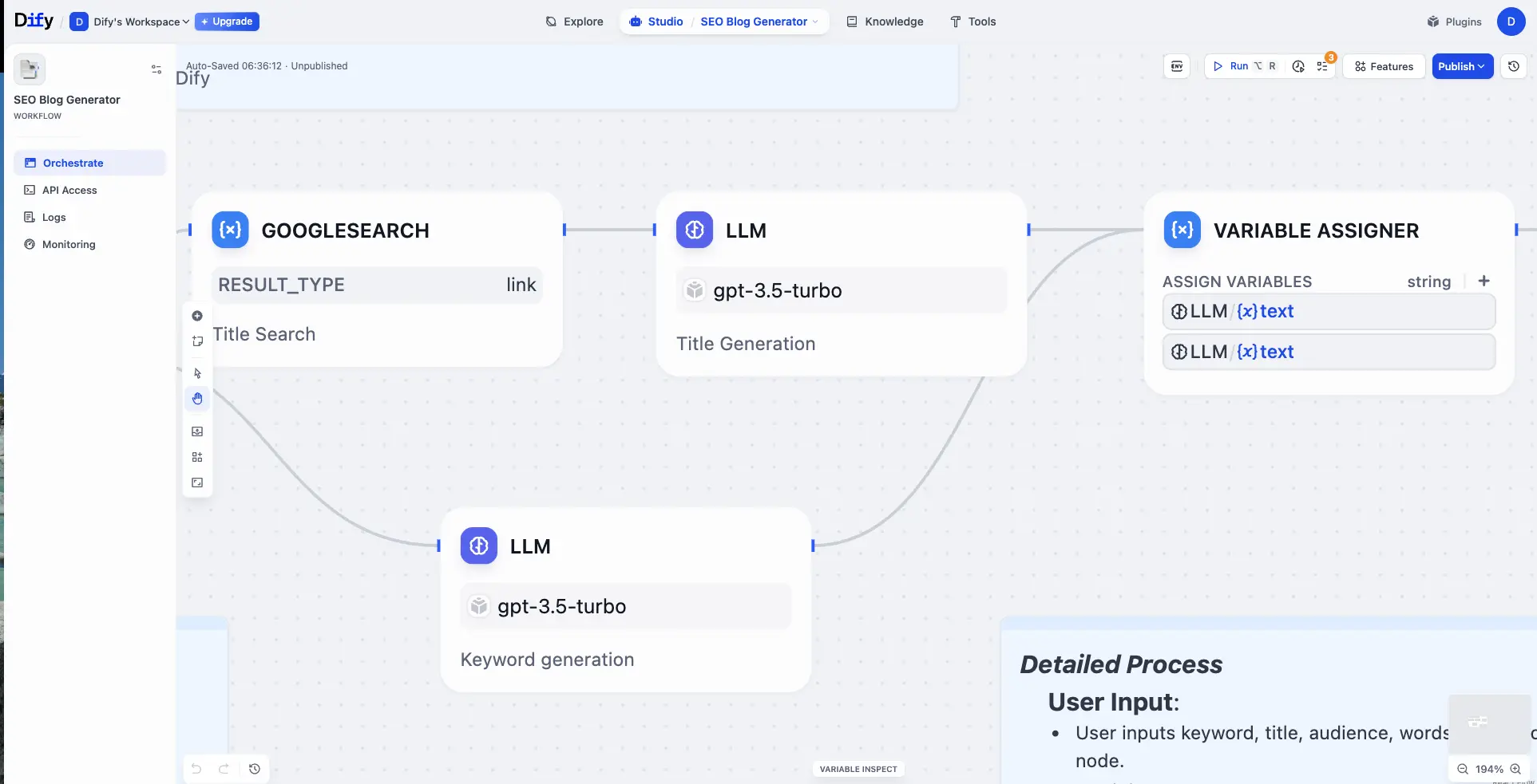 Dify konzentriert sich auf Orchestrierung und Benutzerfreundlichkeit. Es bietet einen Marktplatz mit integrierten Tools und vorgefertigten Vorlagen, was den Einstieg besonders leicht macht. Außerdem lässt es sich gut in Dokumenten-Workflows integrieren, einschließlich Rechnungs-OCR-Automatisierung – so können Teams Daten direkt in ihrer Pipeline extrahieren und verarbeiten.