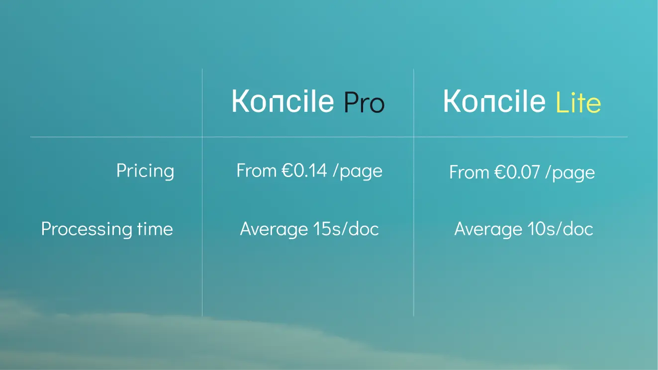 Für viele Dokumente ist Koncile Lite jedoch völlig ausreichend und bietet gleichzeitig erhebliche Einsparungen bei der Dokumentenverarbeitung.