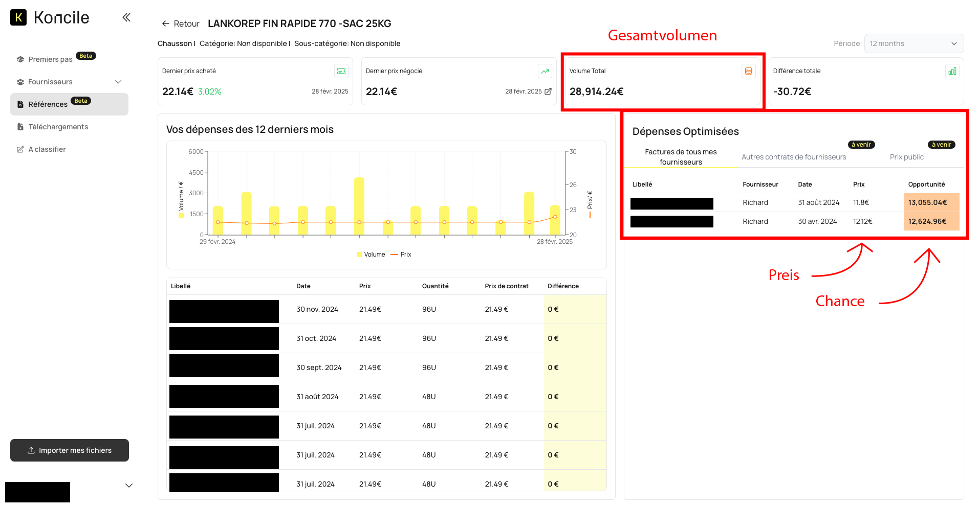 Koncile strukturiert diese Listen automatisch in eine normalisierte, maschinenlesbare Tabelle.