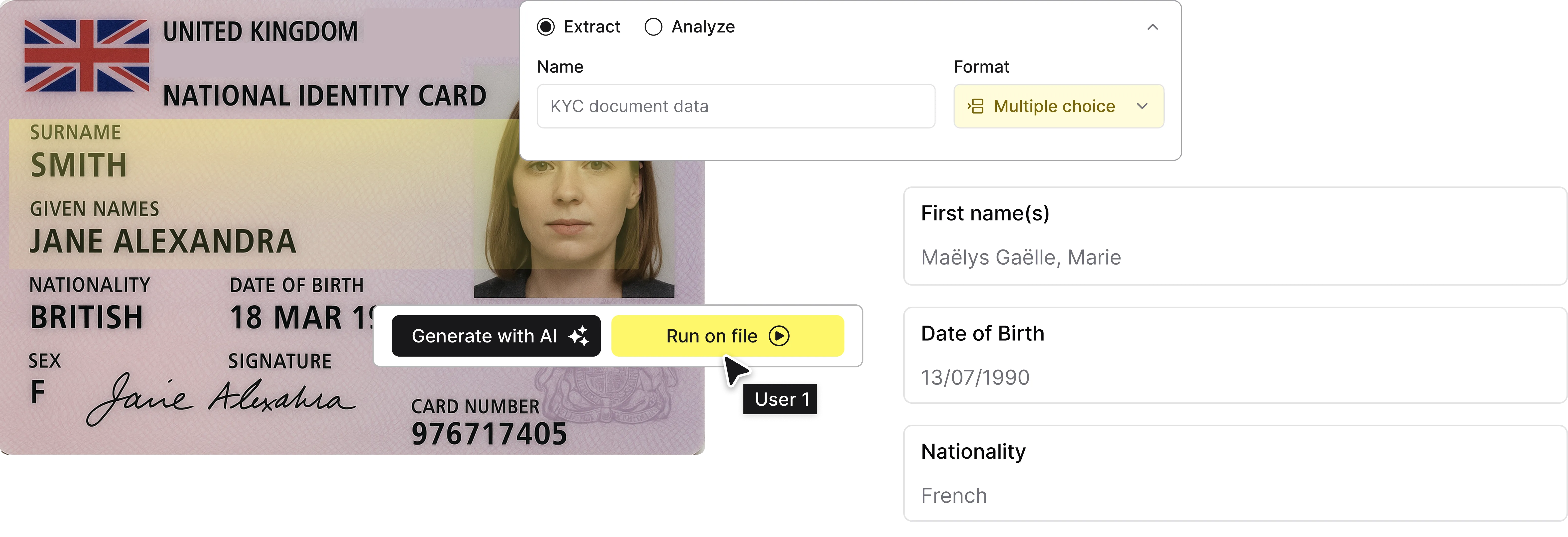 Erstellen Sie Ihre Extraktionsmodelle für KYC-Dokumente, testen Sie sie an einem ersten Dokument und skalieren Sie anschließend.