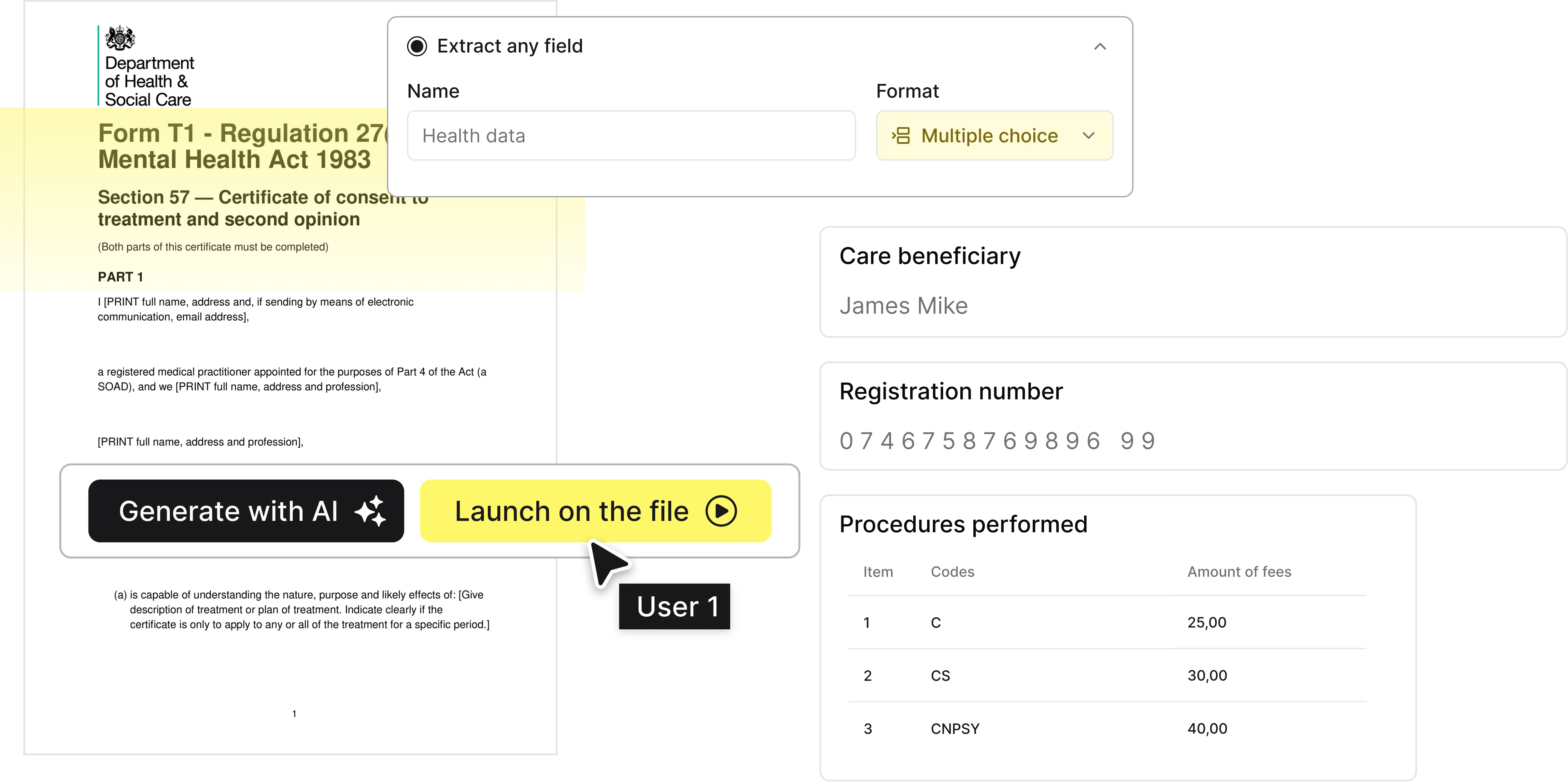 - Ende der manuellen Eingabe : Automatische Extraktion von Daten aus verschiedenen Dokumenten wie Rezepten, Arztberichten, Pflegeblättern, Bescheinigungen, Formularen oder Verwaltungsdokumenten.
