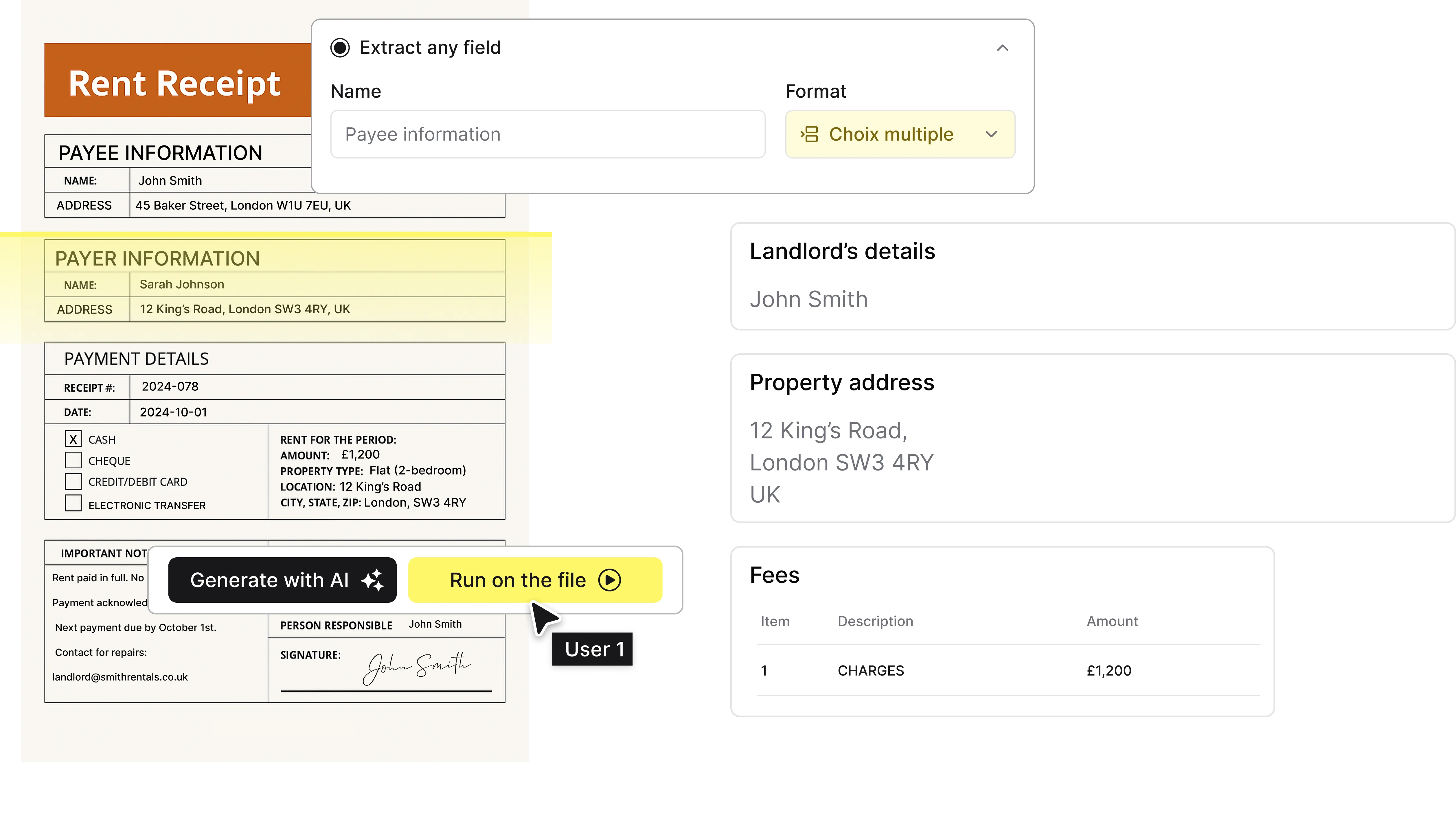 Importieren, extrahieren und zentralisieren Sie Mietverträge oder Quittungen in Ihren Tools.