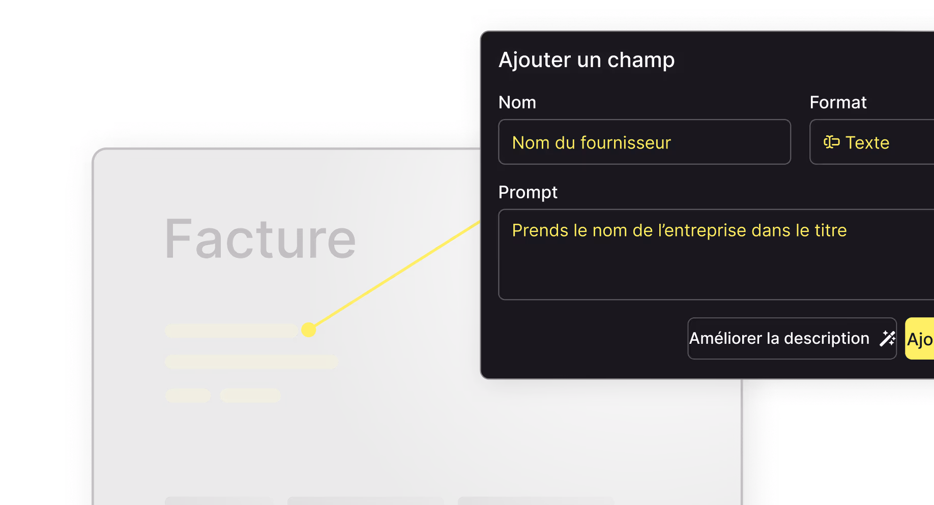 The Koncile tool is, above all, a simple interface accessible to everyone, allowing users to define the fields to capture in their documents. Once you have selected your fields, you can integrate the extracted data into your systems using our API / SDK.