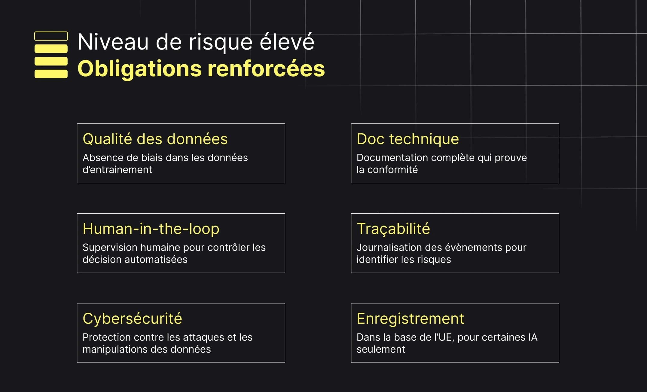 Lorsqu’un système est classé à haut risque, le AI Act ne laisse aucune place à l’improvisation. La conformité repose sur des exigences opérationnelles très précises.