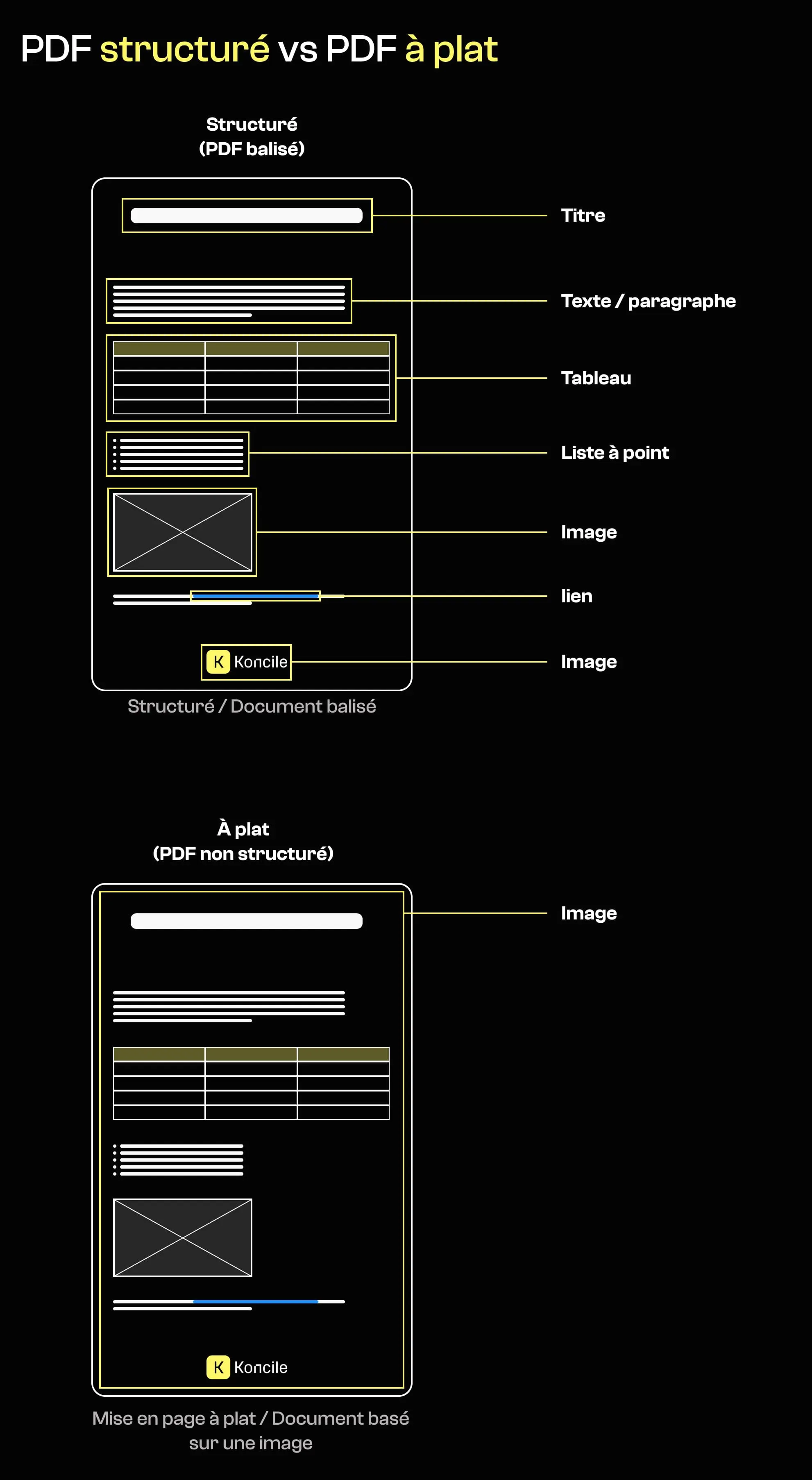 À l’inverse, les documents exportés comme des mises en page “à plat” ou des images manquent souvent de structure interne. Ils peuvent se résumer à une image pleine page par page, parfois complétée par une couche de texte OCR ajoutée après coup.